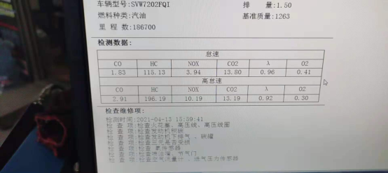 在空燃比正常時(shí),怠速HC很高,屬于點(diǎn)火不良,更換火花塞,清洗噴油嘴,做除積碳。